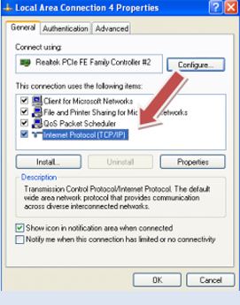 3. Pada Jendela " General ", Klik dua kali pada Internet Protocol (TCP/IP).